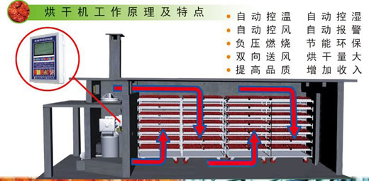 節能型燃煤烘干房按國際標準制作,烘干房采用了PLC大屏幕顯示屏,可顯示整個烘烤過程的工藝曲線。熱源以煤或柴為燃料,房體由防火聚氨酯保溫板成,內部骨架全部采用插接式鍍鋅結構,安裝方便,堅固耐用。整個設備經久耐用,穩定性好。設計科學、自動化程度高,盡量滿足每個客戶烘烤的特性,烘烤曲線可以自行編制或對溫濕度控制設備內已儲存的烘烤曲線進行修改,以達到所有客戶的烘烤工藝要求。