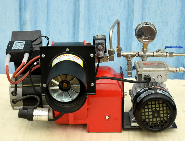 燃燒器所有部件集為一體,結構緊湊。配有滑動式安裝法蘭,套裝在燃燒頭后的燃燒筒上,只需將法蘭固定到爐子上。按通電源,即可投入運行。