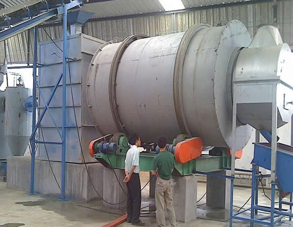 該機的外部表面積比單筒回轉式烘干機減少30%以上,并且外筒對內筒有保溫隔熱作用,外筒表面溫度低,熱損失少,在節能的同時,大大改變了勞動環境和勞動條件。多種揚料板設計,角形揚料板與萬字揚料板的結合,使物料與熱煙氣交換,減少了烘干機筒內風洞產生的機理。物料初水分,終水分確保以0.5-1%以下,是水泥廠礦渣粉和干粉砂漿生產線等各種烘干工程理想產品。