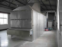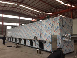 0371-666 99 708設備主要結構特點是將換熱器放置于網帶上下位置,熱風循環方式為縱向多單元串聯循環,具有加熱均勻,熱利用率高的優點。