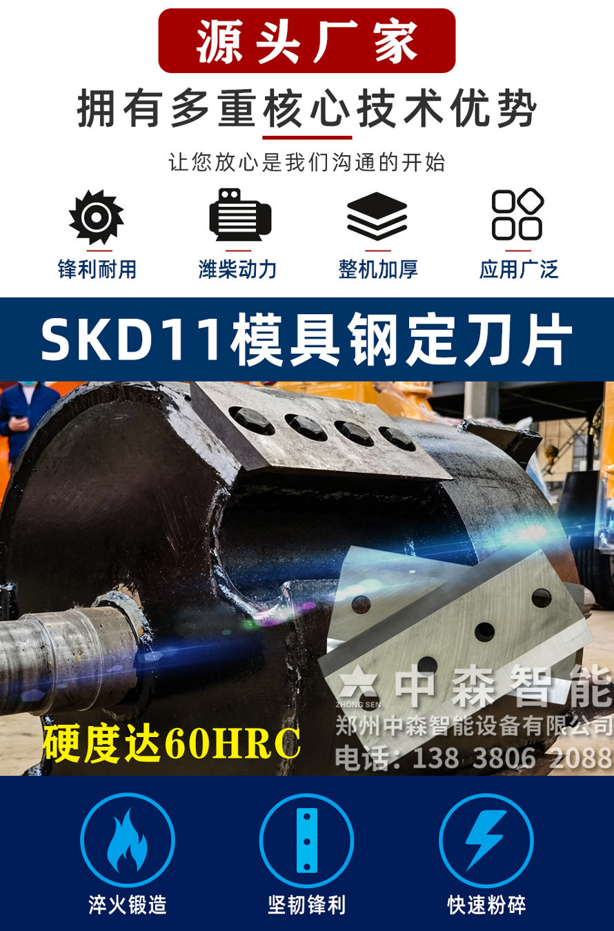 【產品介紹】中森智能專注于木材粉碎機20余年,從研發設計生產到銷售,現已形成一體化制造商以及售后服務商;木材粉碎機是加工生物質顆粒,造紙,木炭,多種板材,食用菌,生物發電,園林,木屑,有機肥等農,林,工業生產配套設備.可粉碎多種雜木,木材,木頭,模板,邊角料,樹枝,竹子,園林綠化,食用菌等物料。
