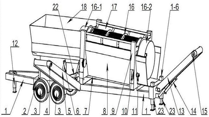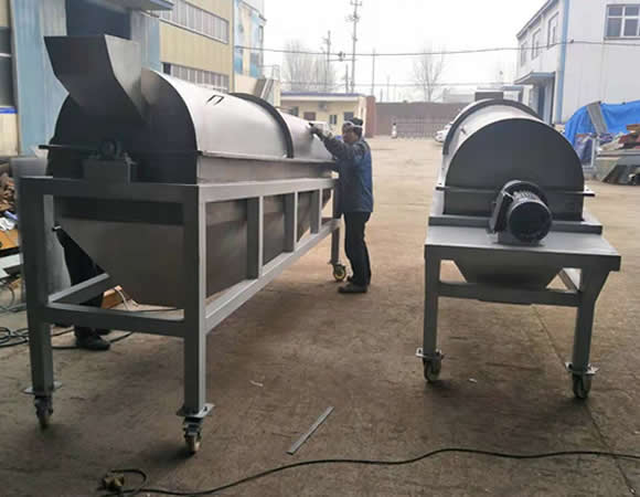 移動式滾筒篩分機原料送入圓筒中之后,會被旋轉(zhuǎn)的圓筒帶起并落下,這種行為將一直反復地沿著圓筒運行著,細的顆粒通過篩孔并從導料槽排出,而粗的顆粒則一直向前運動直到從圓筒篩的尾部排出。