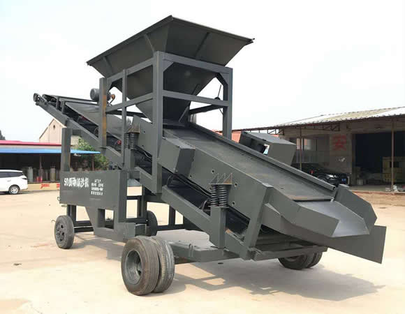 3.拆裝轉場簡便:振動篩沙機設備的高度整體性便于施工現場存放或轉場運輸,拆裝部件只有成品堆料皮帶機,松開底部固定螺栓和吊掛鋼絲繩,將成品皮帶機塞入主框架底面即可。